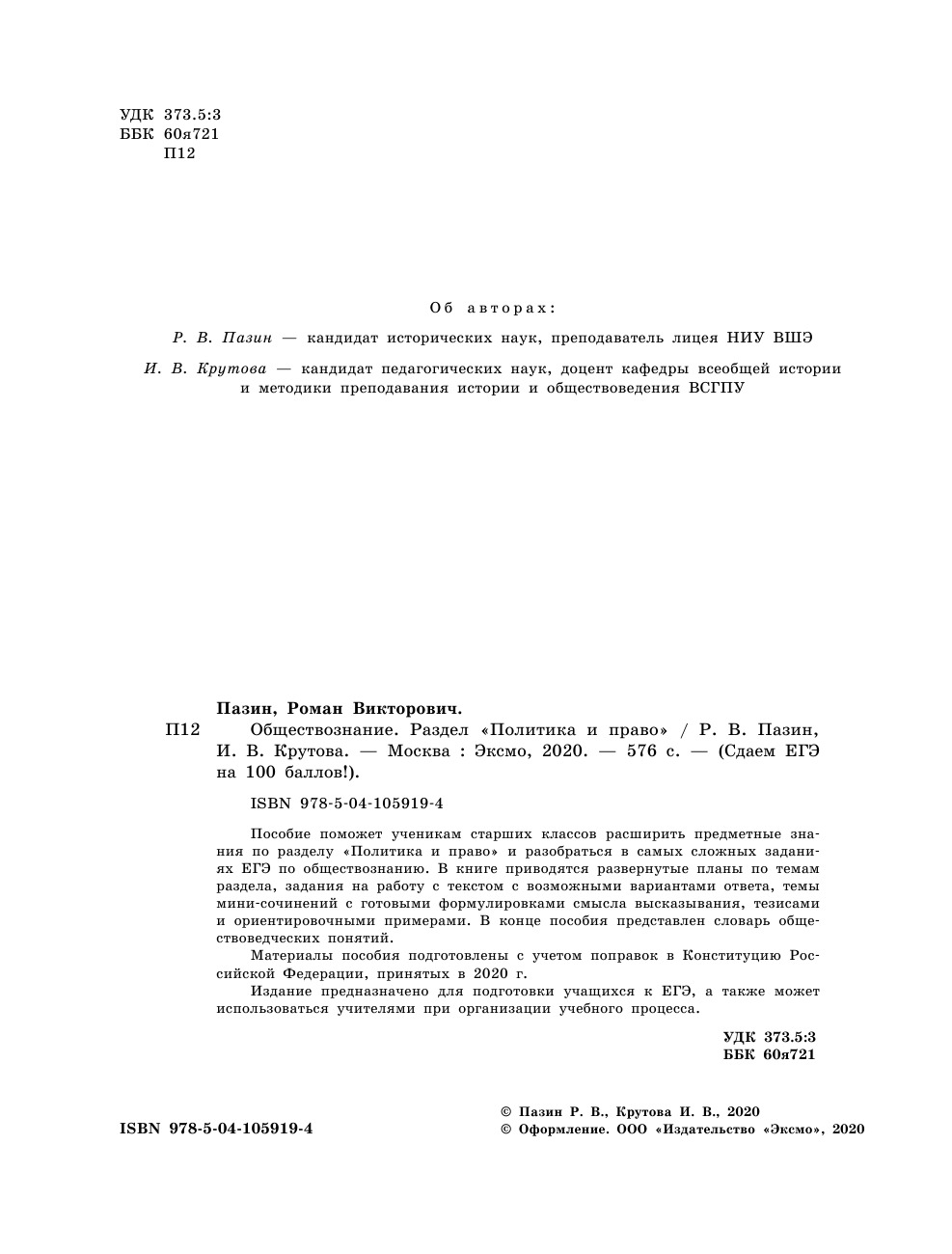 Обществознание. Раздел Политика и право | Крутова Ирина Владимировна, Пазин Роман Викторович