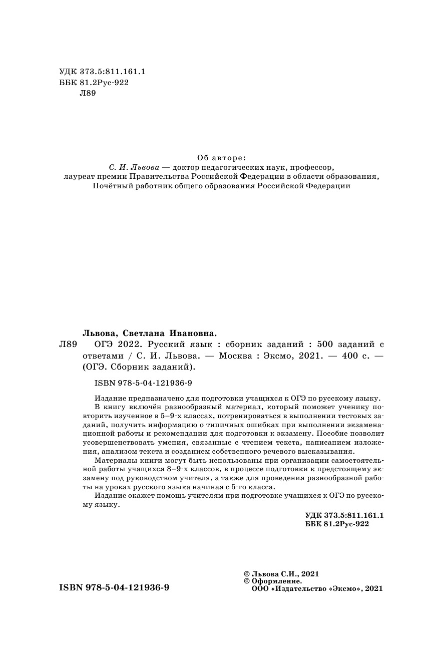 ОГЭ-2022. Русский язык. Сборник заданий: 500 заданий с ответами | Львова Светлана Ивановна