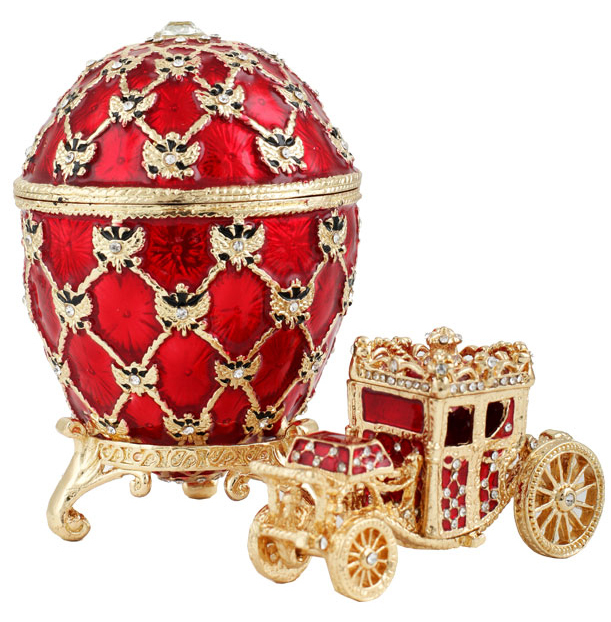 Яйцо-шкатулка в стиле Фаберже Коронационное, красное, 9,5см