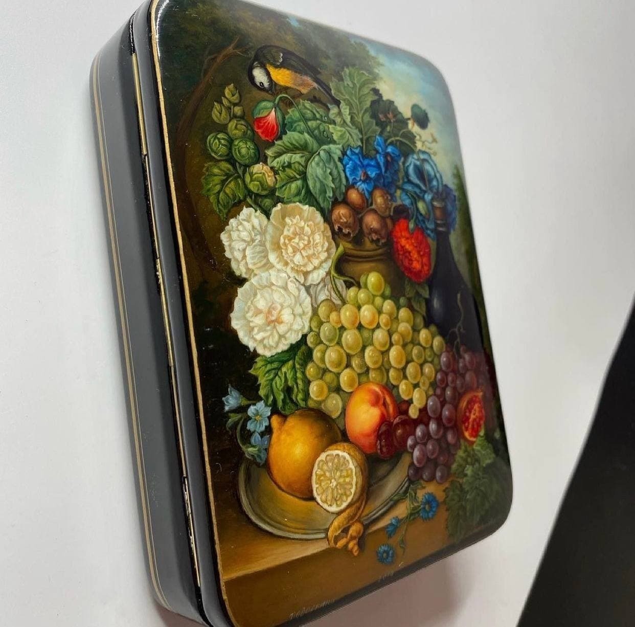 Шкатулка с лаковой миниатюрой Натюрморт с виноградом / Ручная роспись