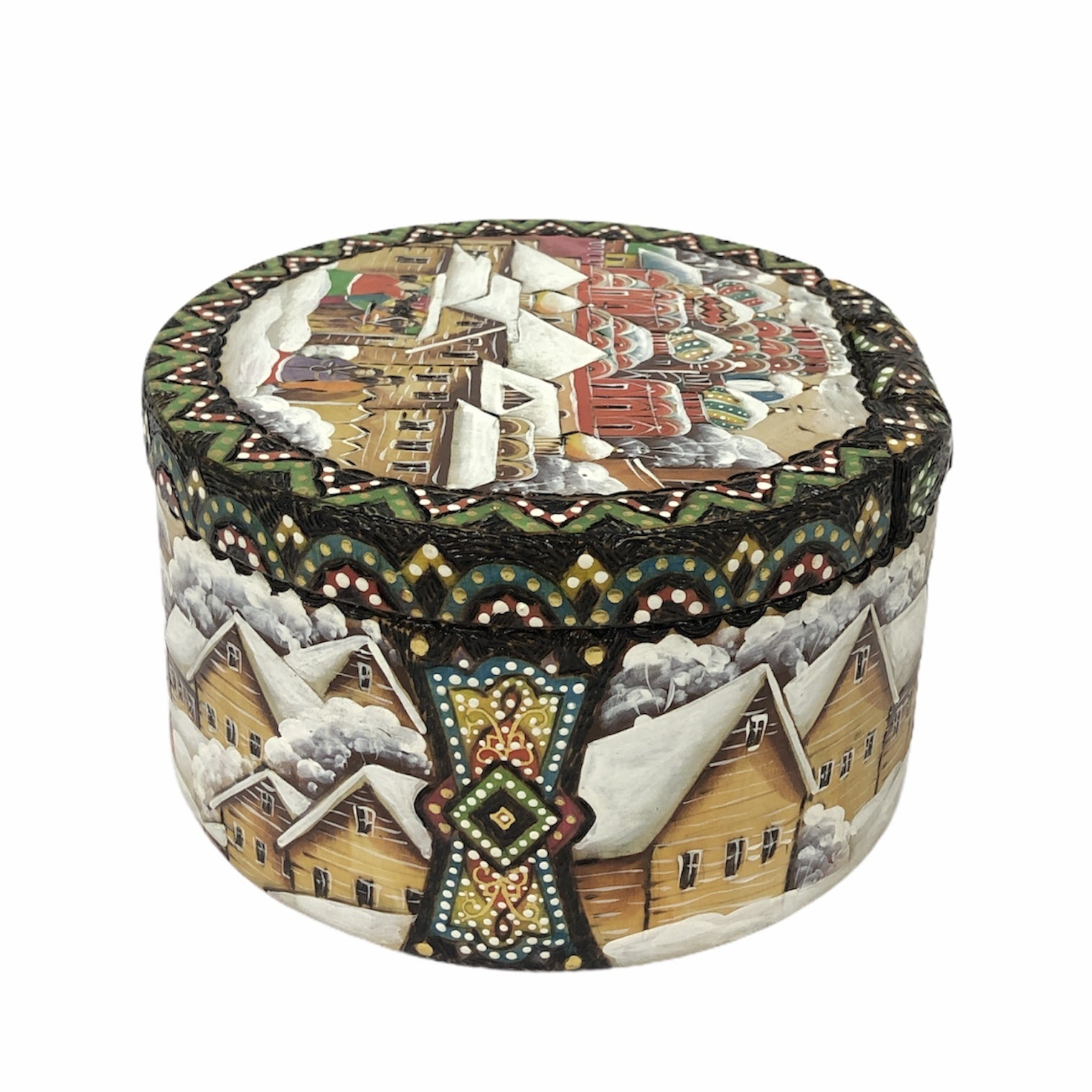 Шкатулка деревянная "Ярмарка в Москве" липа 16см х 16см х 9см ручная работа