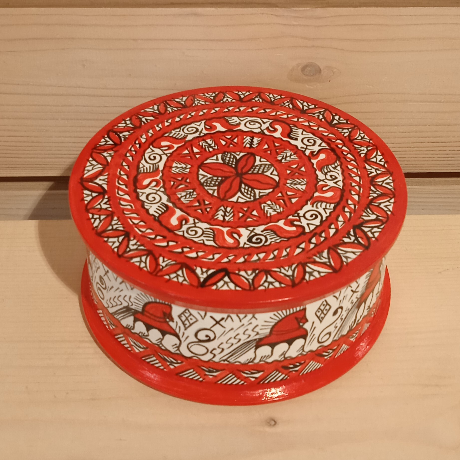 Короб круглый красный (267), Северная роспись, ручная авторская работа