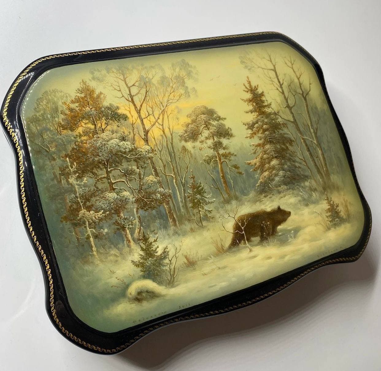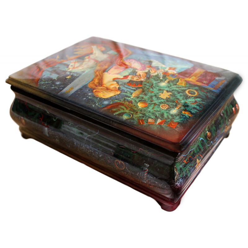 Шкатулка с лаковой росписью Зимний пейзаж / Ручная работа