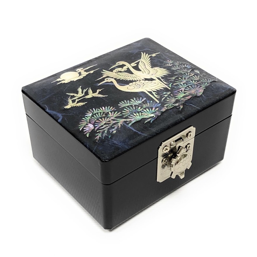 Шкатулка "Семья журавлей" 10х8 см с перламутром ручная работа