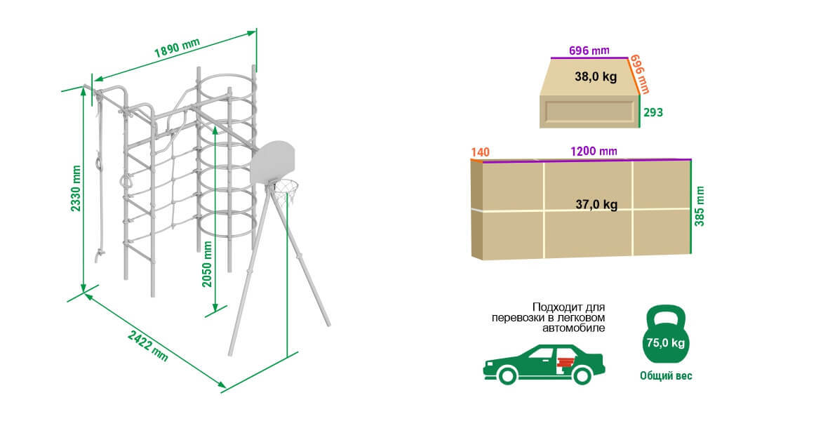 Домашний спортивный комплекс, массажные ступени, пристенный уголок /белый