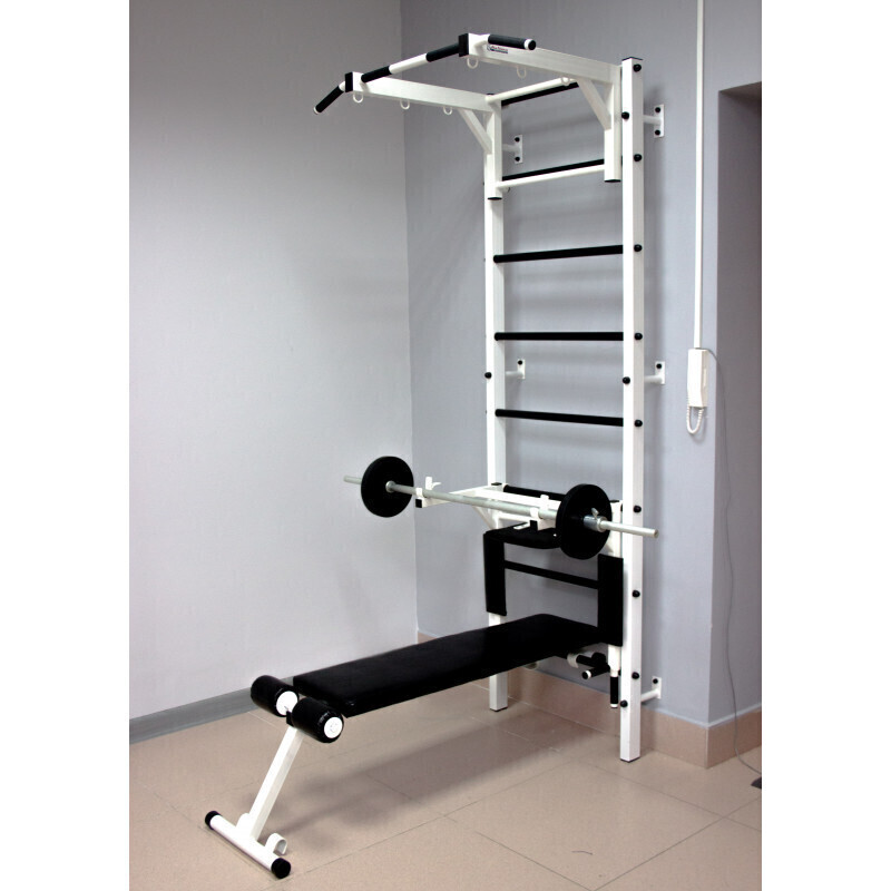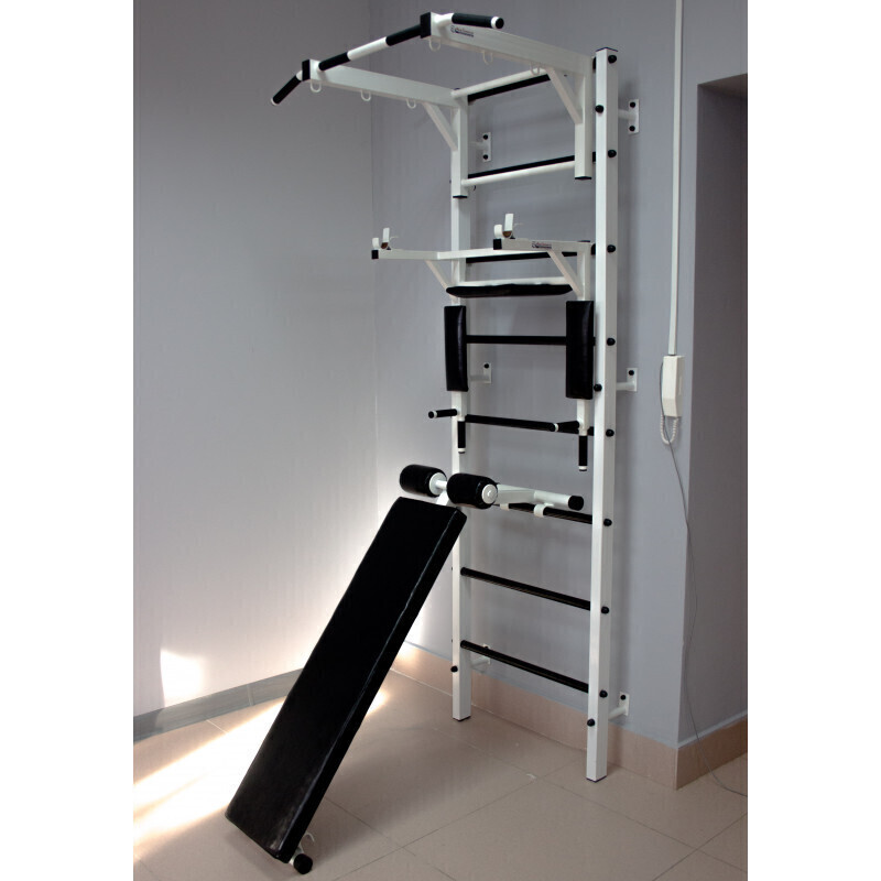 Шведская стенка для детей с сеткой, массажные ступени, пристенный, белый PASTEL