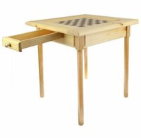 Шахматный стол светлый с фигурами и ящиком (простые ножки) (72x72x72см)