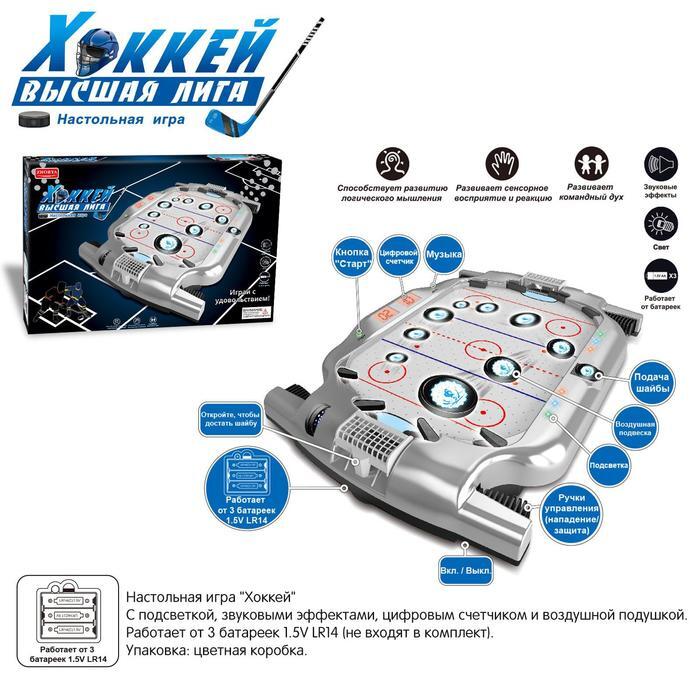 Аэрохоккей "Высшая лига", световые и звуковые эффекты, работает от батареек