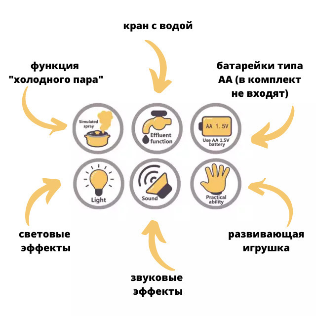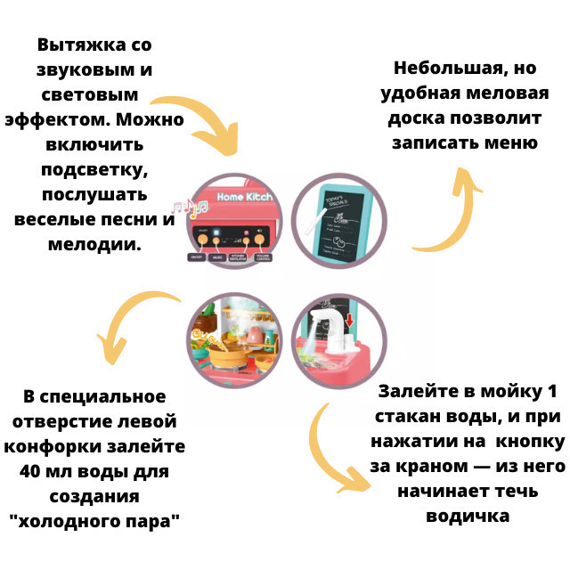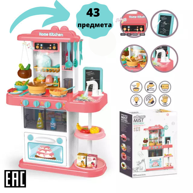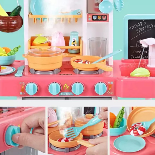 Детская игровая кухня с водой, холодным паром, 65 аксессуаров, 94см