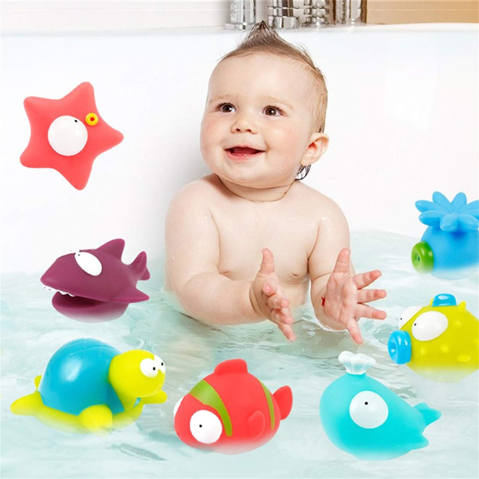 Детский виниловый набор игрушек для купания + ванночка 8 зверят