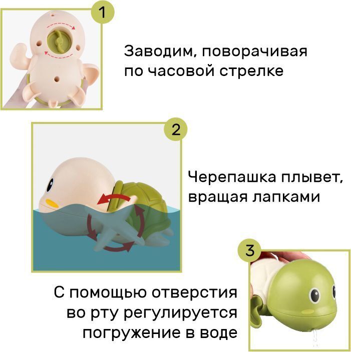 Игрушка для ванной черепашка / заводная черепашка / игрушки для купания