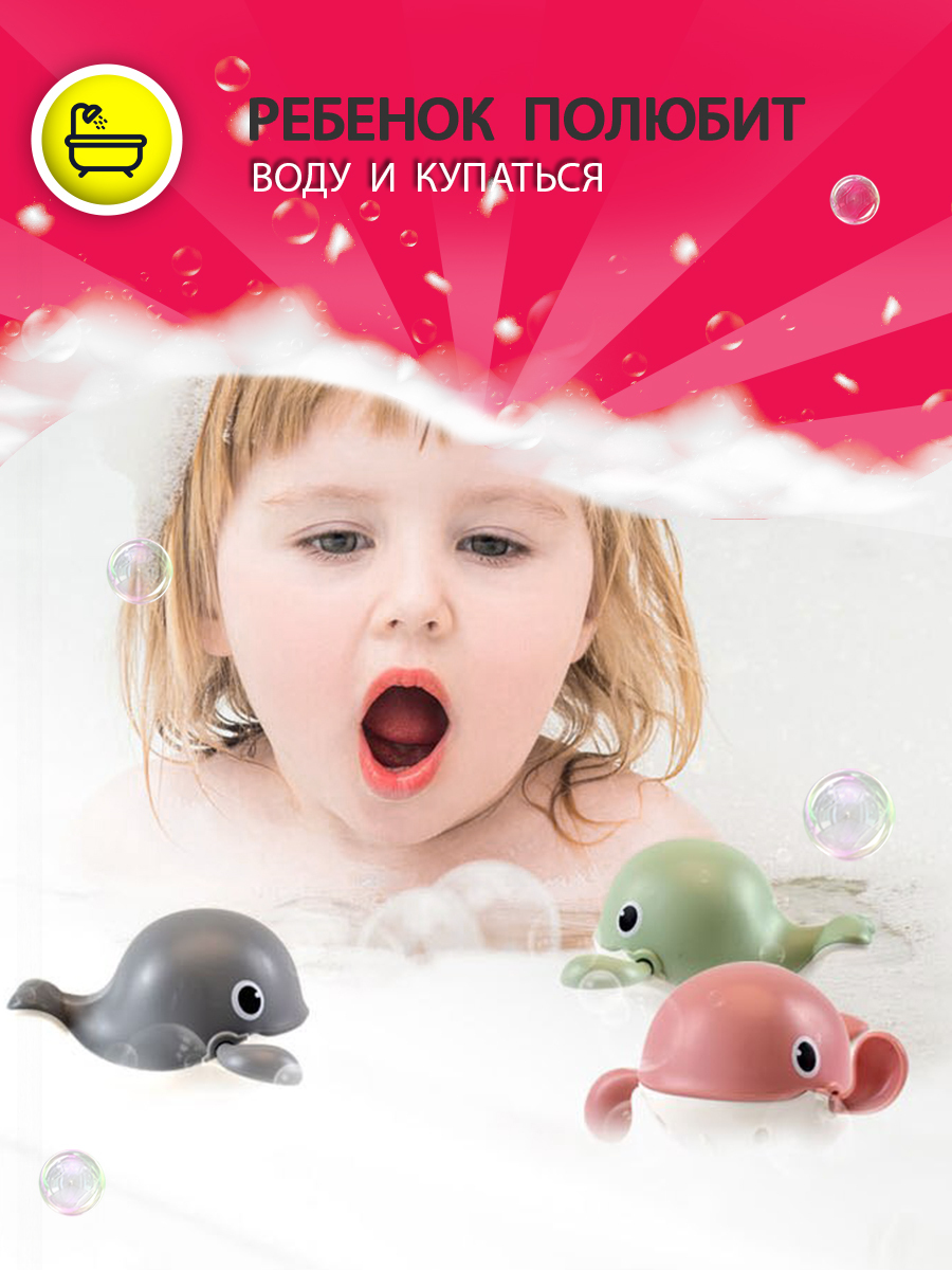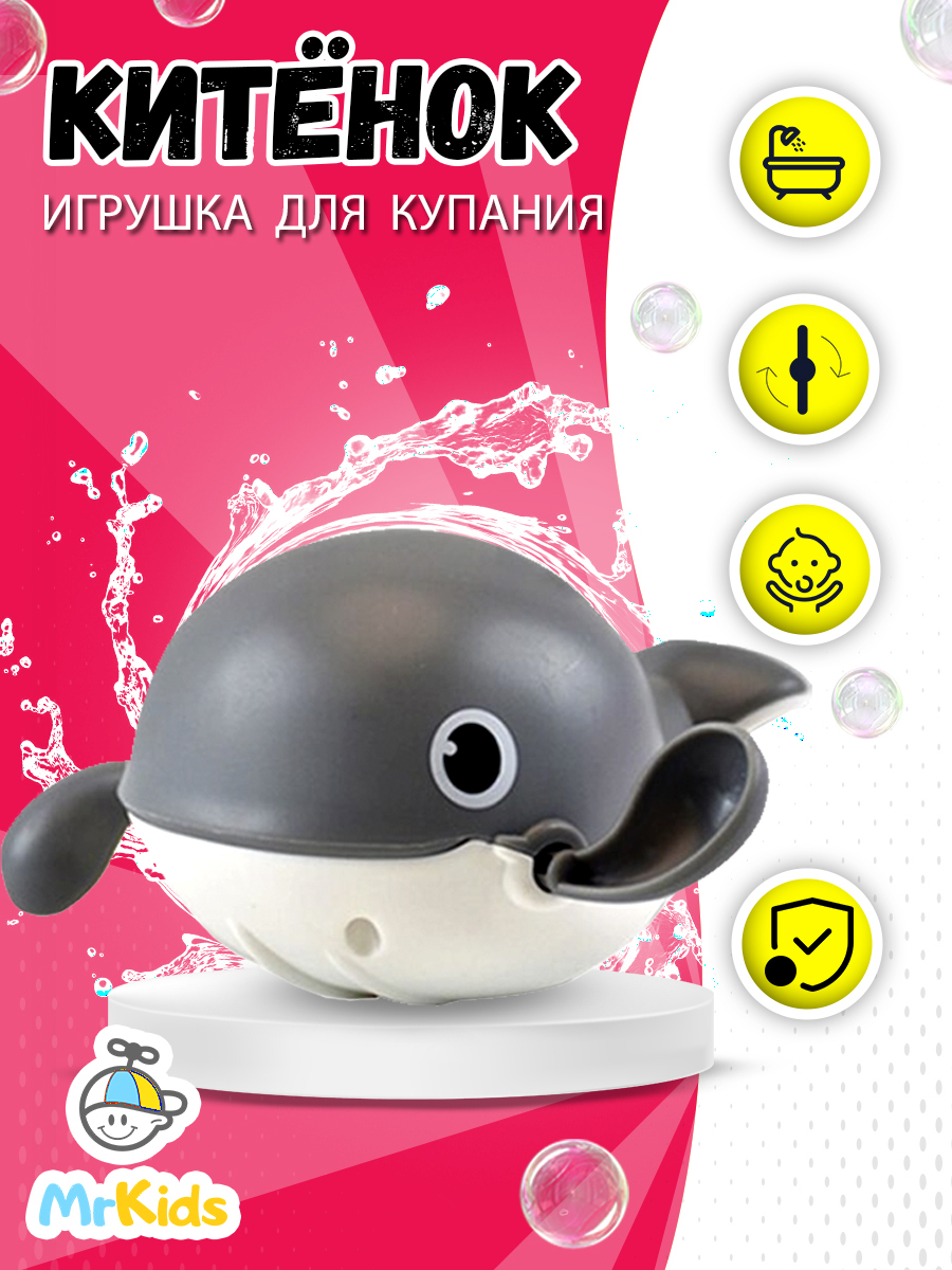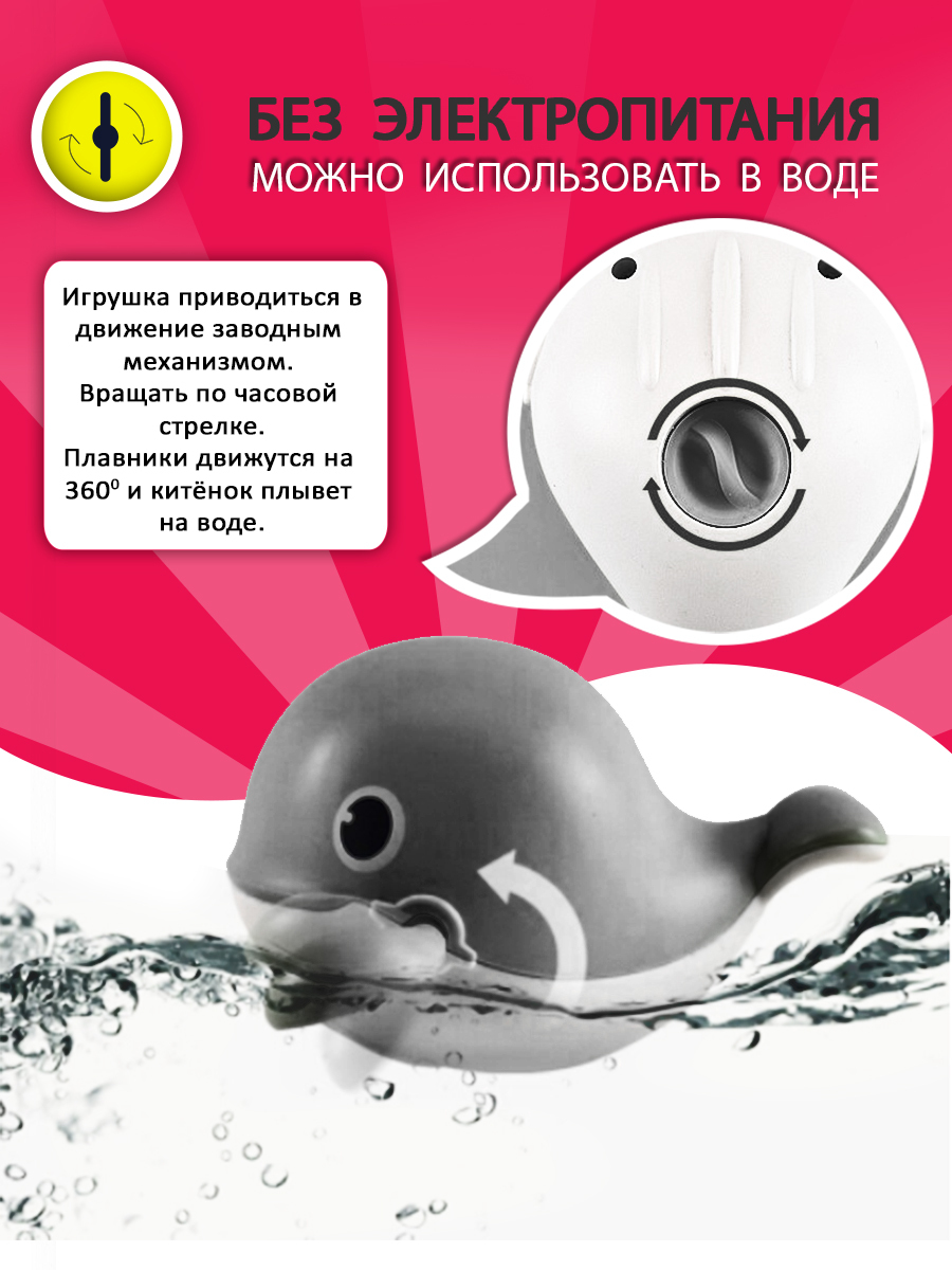 Игрушка для ванной / заводной кит/ игрушка для купания (серый)