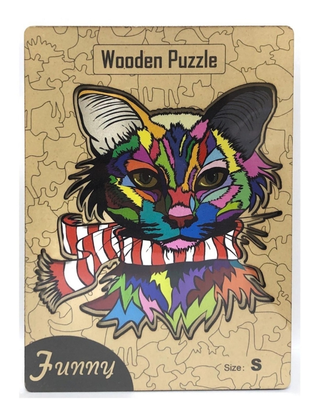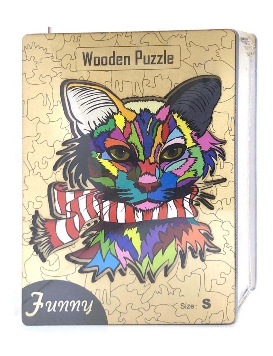 Деревянные фигурные пазлы: "ЖИВОТНЫЕ" размер 15x20 см, в деревянной подарочной коробке. КОТ