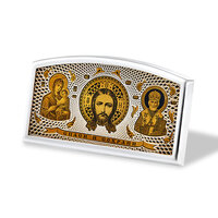 Серебряная иконка в автомобиль "Спаси и сохрани", обсидиан, серебро, гальваника, высота 33 мм