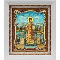 Праведный Симеон Верхотурский с житием, белый киот 14*16 см