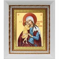 Икона Божией Матери "Всецарица", белый киот 14*16 см