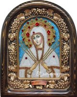 Семистрельная Божия Матерь, голубой фон, дивеевская икона из бисера