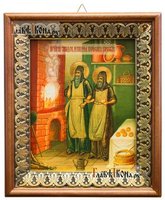 Спиридон и Никодим, просфорники Печерские, икона в киоте