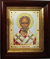 Икона Николай Чудотворец святитель двойное тиснение 16х18 в киоте под стеклом со стразами 2 вид