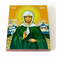 Блаженная Матрона Московская на фоне монастыря, икона на доске 13*16,5 см