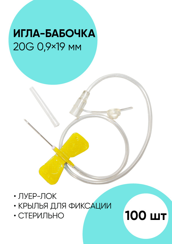 Устройство для вливания в малые вены, игла-бабочка 20G 0,9х19