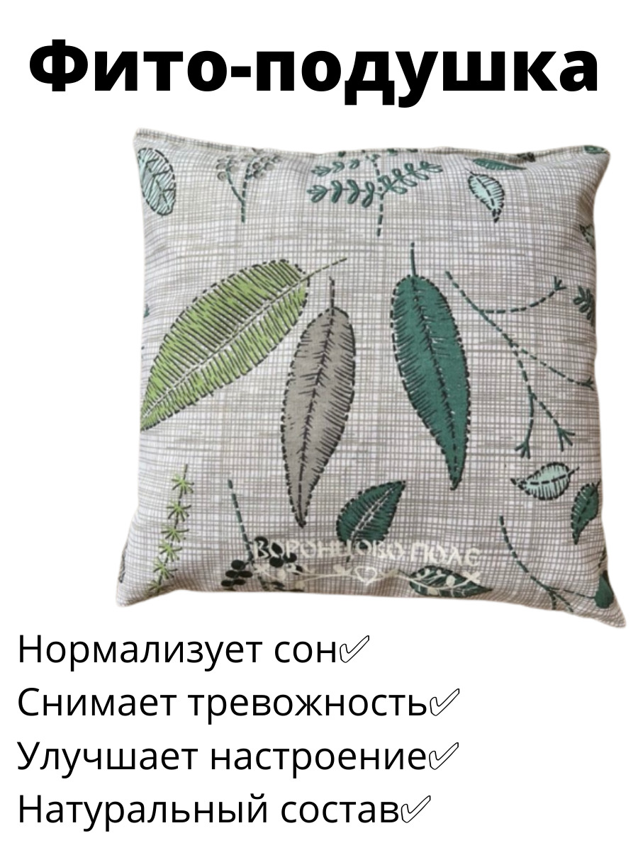 Фито-подушка с травами для сна 30*30,подушка с травами,белая с рисунком