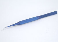 Титановый пинцет TB-11 заострённый синий 140мм с загнутым кончиком