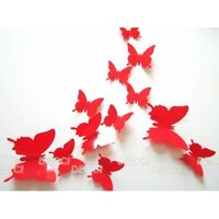 Наклейка на стену "Бабочки красный 3D" 12 шт
