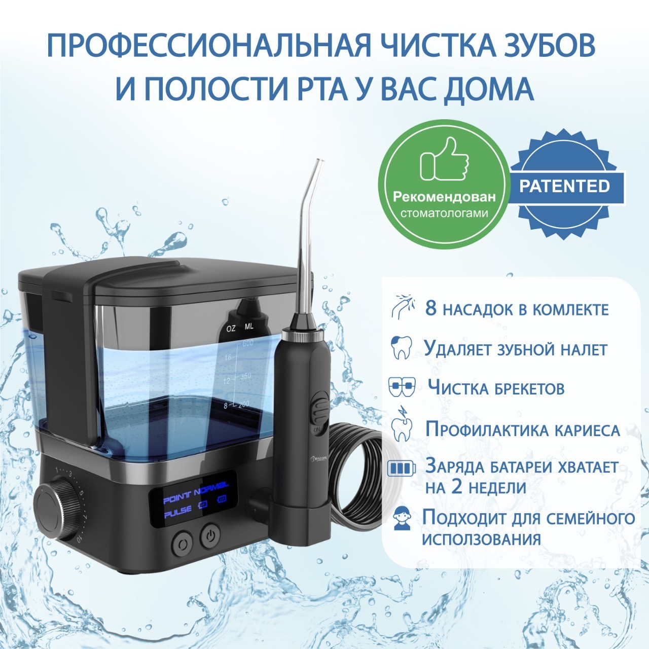 Портативный ирригатор полости рта для чистки зубов, языка и брекетов