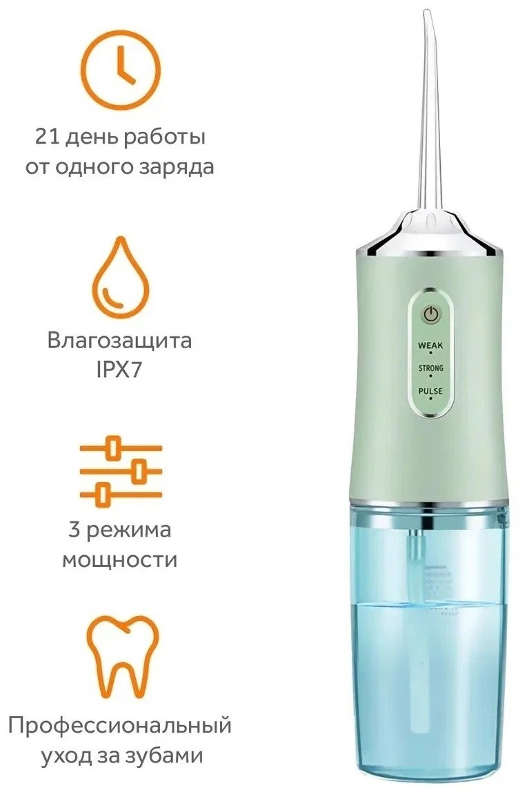 Ирригатор для полости рта портативный Oral Irrigator PPS, для чистки зубов, зеленый