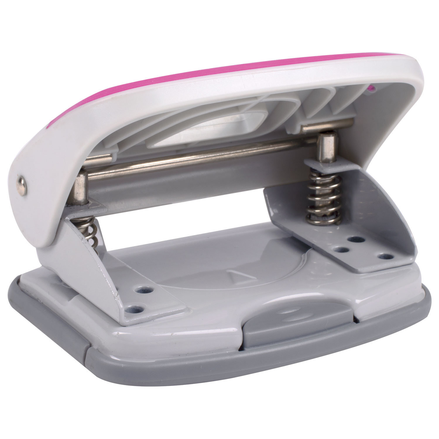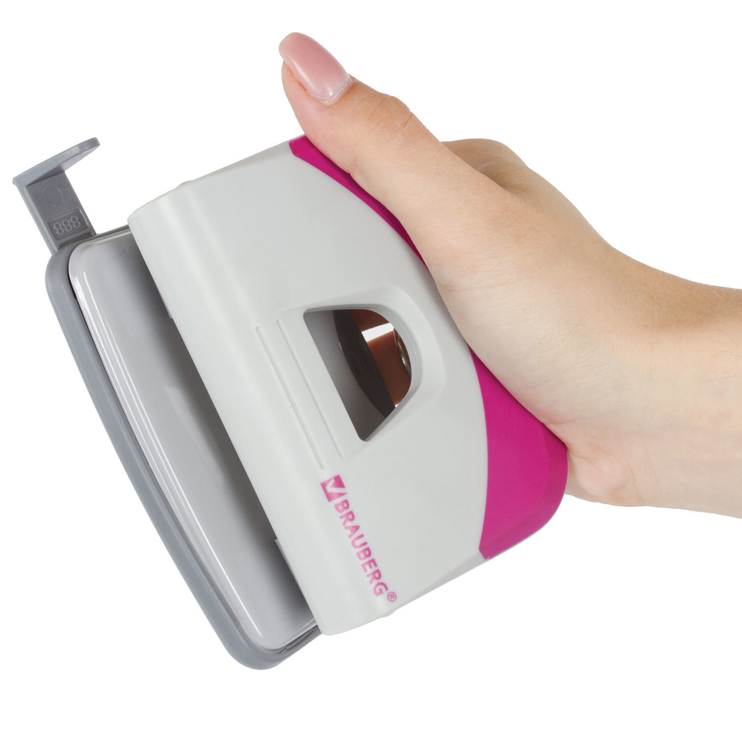 Дырокол Delta, до 20 листов, с резиновой накладкой, серый, розовая вставка, 222558