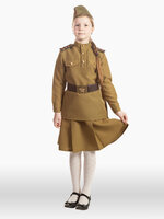 Карнавальный костюм KARNAVALKINO КДВ-1 военный для девочки (платье, ремень, пилотка) р. 128-134