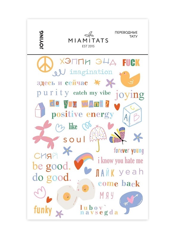 Miami Tattoos / Переводные тату Joying (Уточка, собачка, фразы, формат А5)