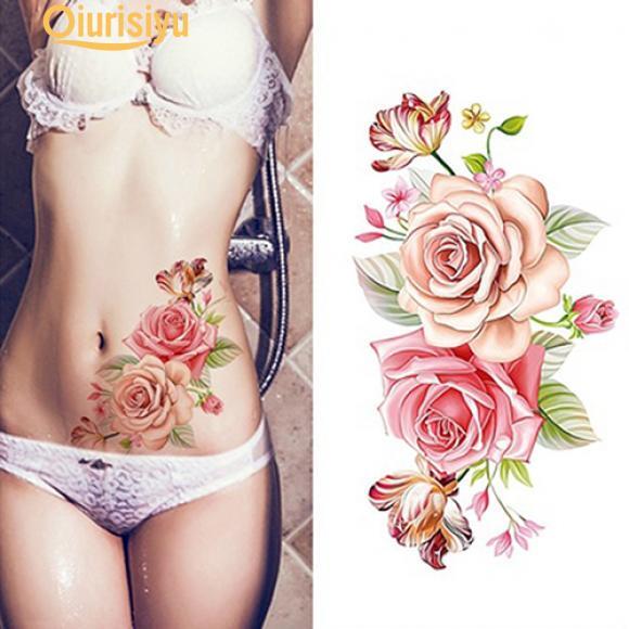 Женское тело Водонепроницаемый цветок пиона Временная наклейка для татуировки