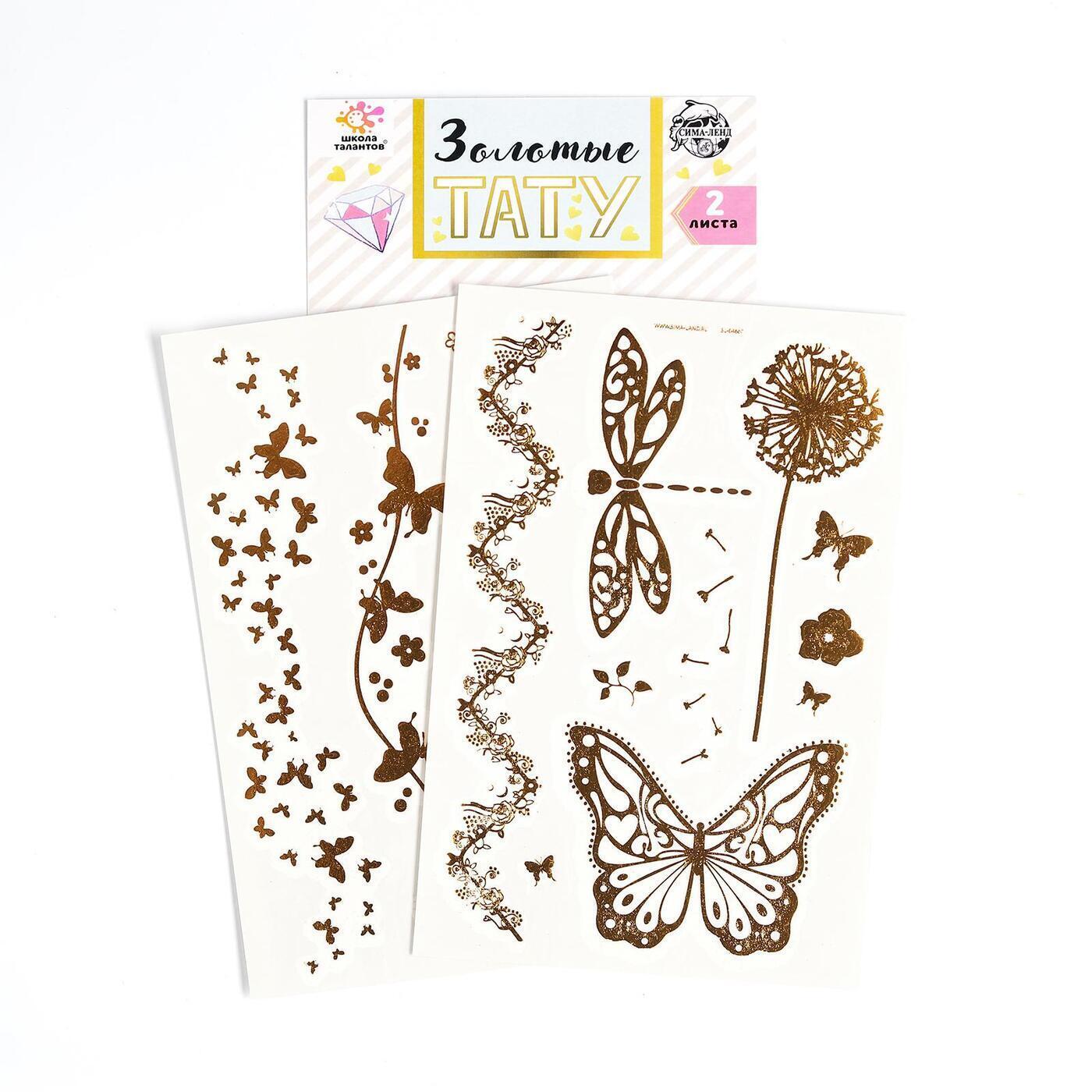 Детские татуировки переводки Школа талантов "Бабочки", размеры - 10х15 см, набор 2 листа, золото