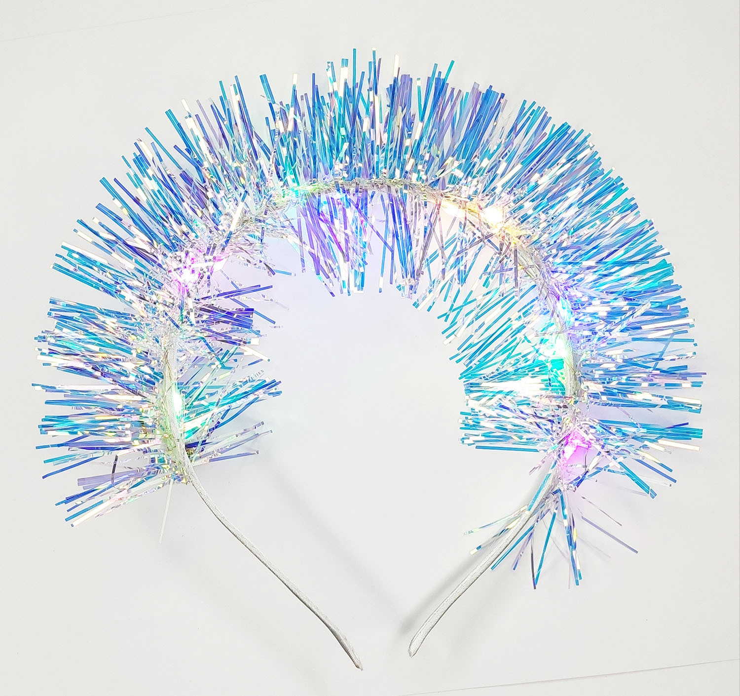 Ободок для волос новогодний "Мишура", светящийся, белый