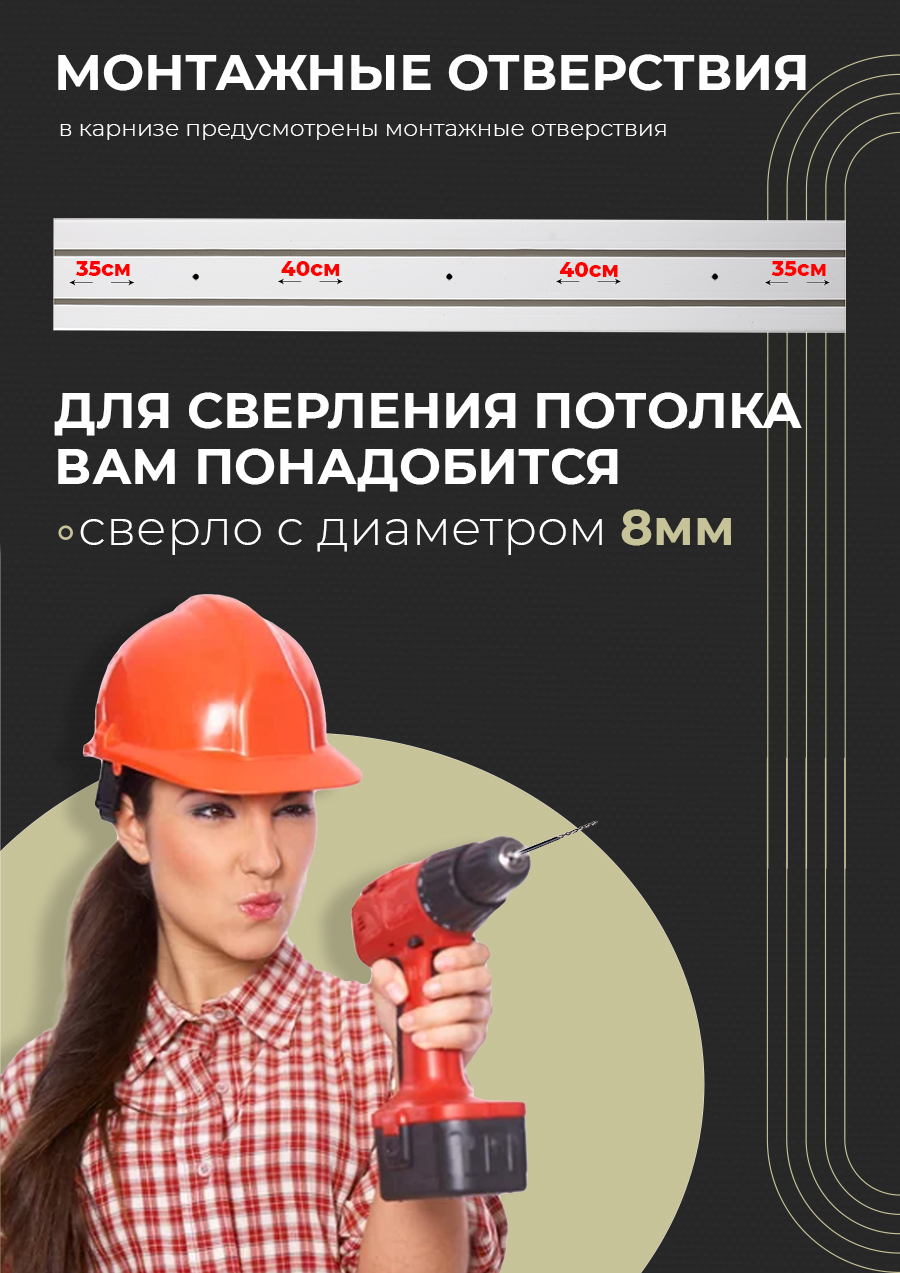 Карниз двухрядный потолочный , 450 см, прямой , без бленды.