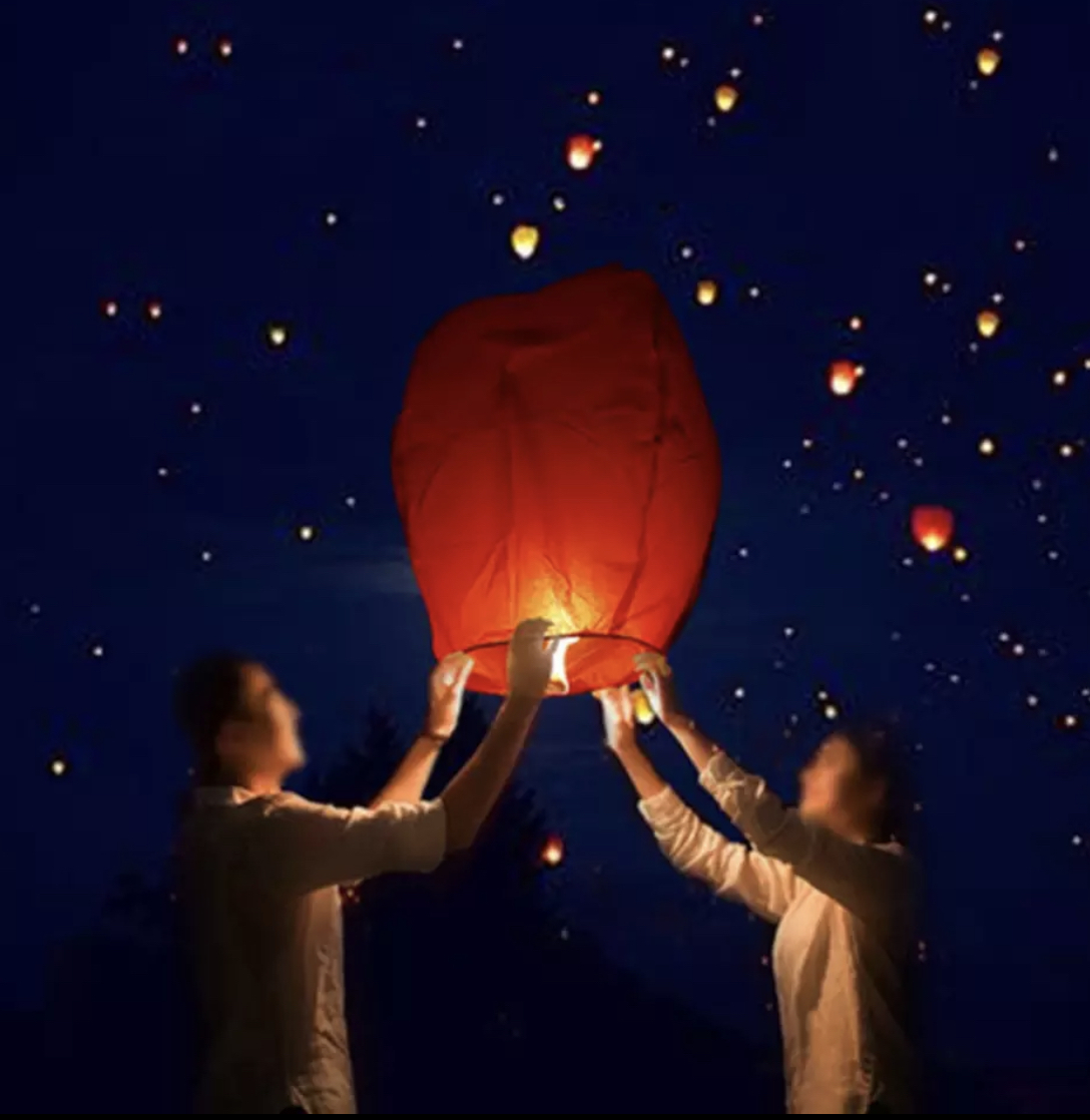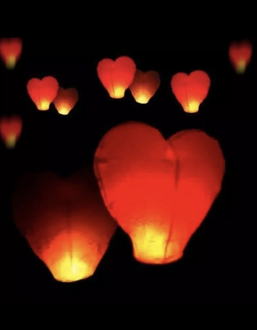 Китайский-небесный фонарик желаний, форма сердце, цвет красный, 2 штуки