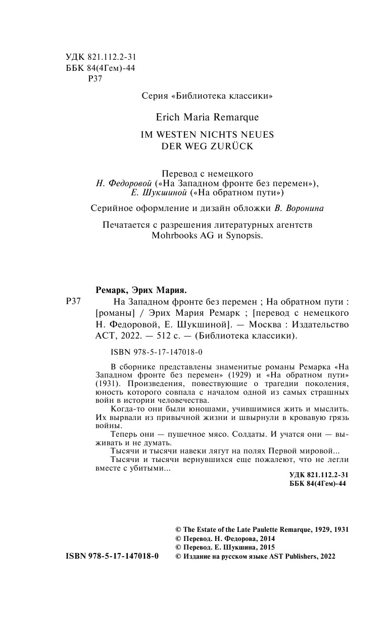 На Западном фронте без перемен. На обратном пути | Ремарк Эрих Мария
