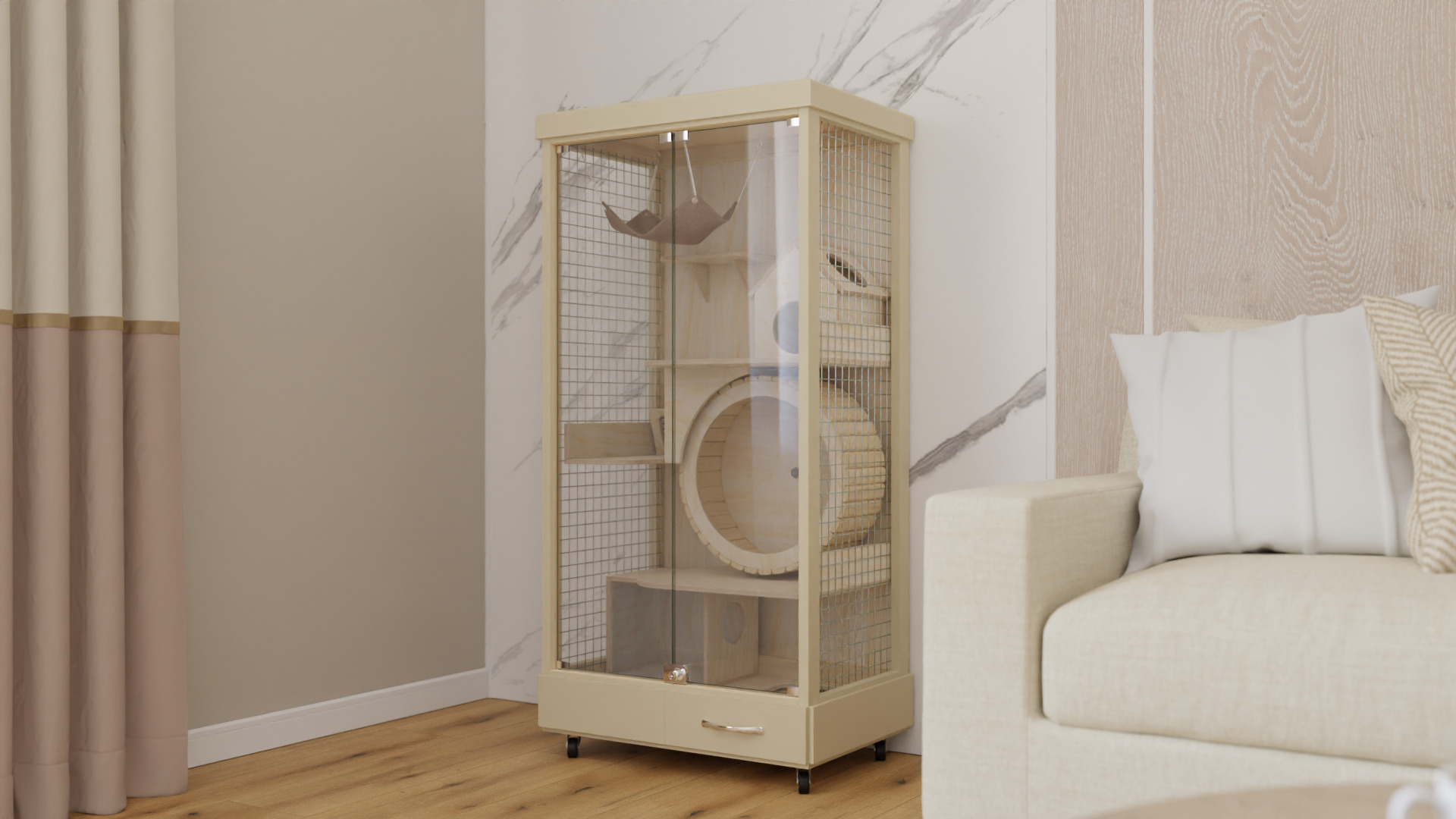 Клетка-Витрина для шиншиллы дегу, белки, хорька - Дом Грызунов Р5, бежевая