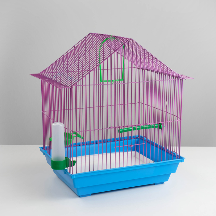 Клетка для птиц малая, крыша-домик (поилка, кормушка, жердочка, качель)35 х 28 х 43 см микс