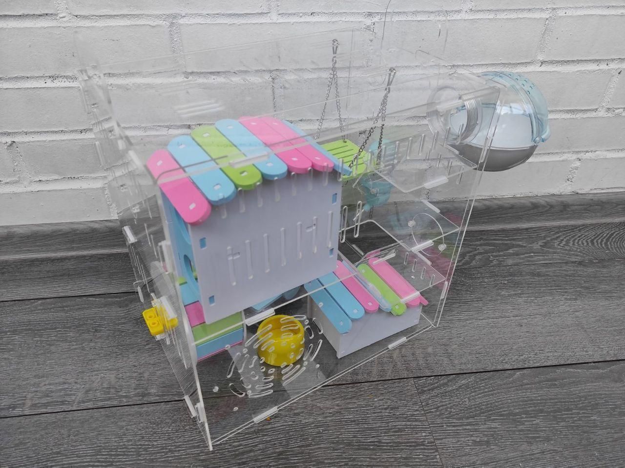 Клетка-домик для хомяка, акриловая, с наполнением. Два этажа