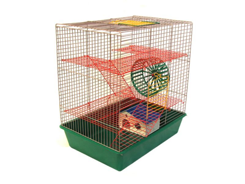Клетка для ДЖУНГАРИКОВ Крепыш 3 с домиком, миской и колесом, 30*22*32 см