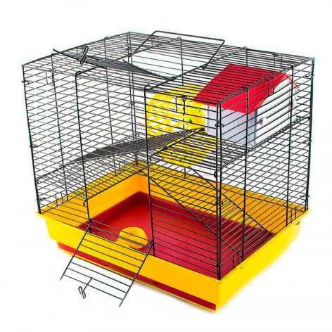 Клетка №2 для грызунов, 41*30*37см, 2 этажа, домик, колесо (14см), миска (6см)