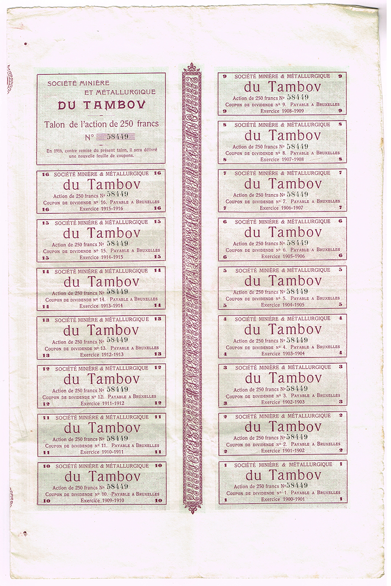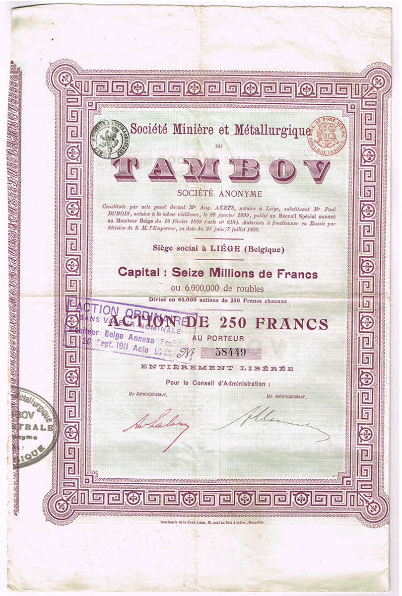 Облигация Камских (Чусовских) чугунолитейных заводов князя Сергея Голицына в 500 франков, 1884 год