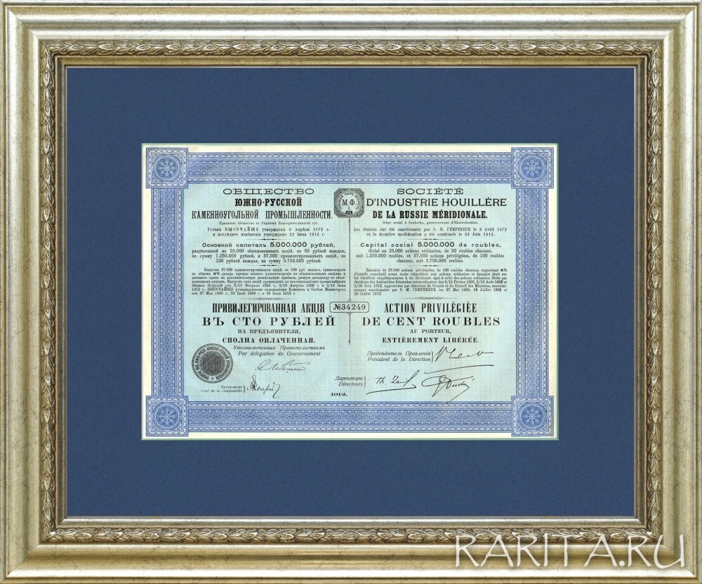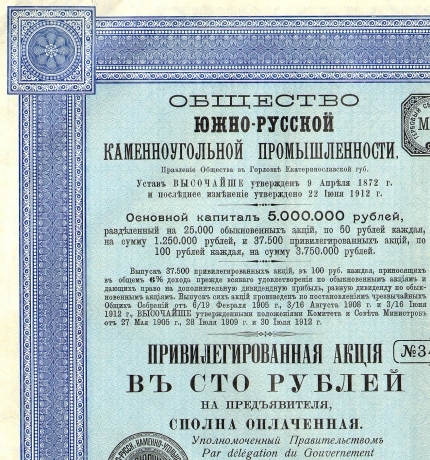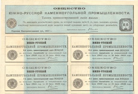 Каменноугольная промышленность (Южно-Русская), привилегированная акция 1912 года
