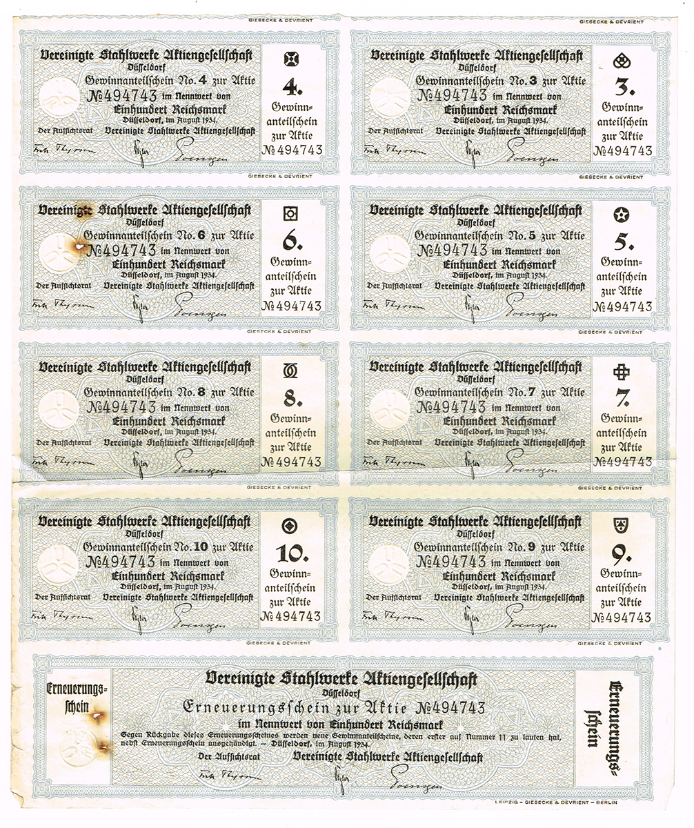 Нефтепереработка, акция французской компании Lutetia на 100 франков, с полным купонным листом