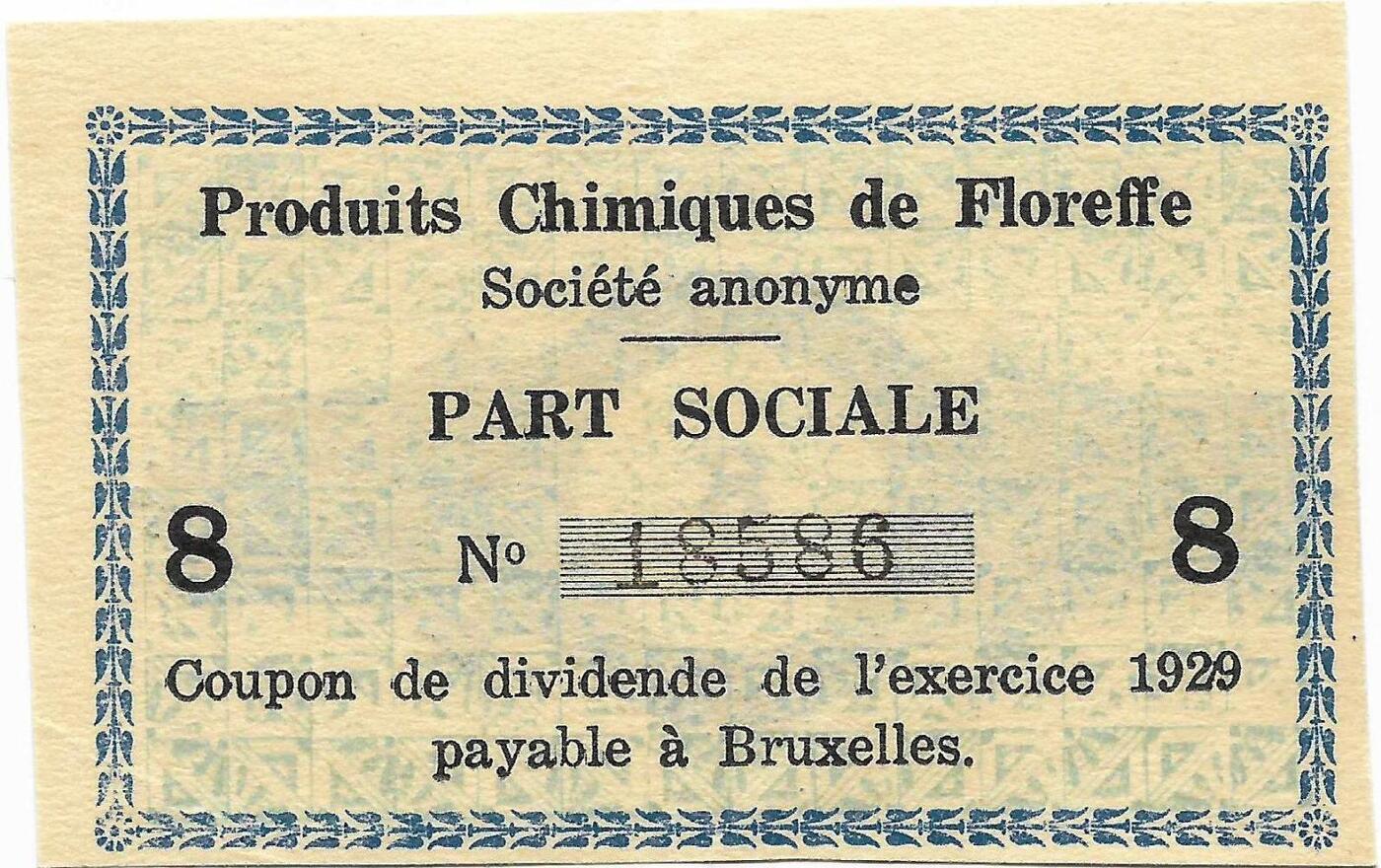 Купон акции бельгийского химического акционерного общества Флореф начала XX в.