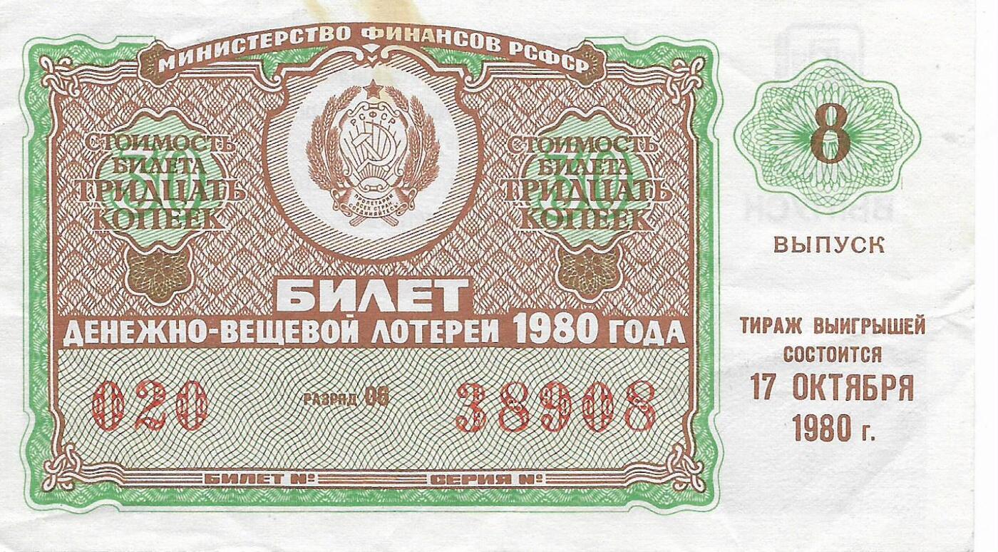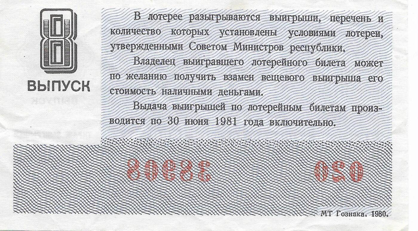 Билет денежно-вещевой лотереи 1981 г. Праздничный выпуск.