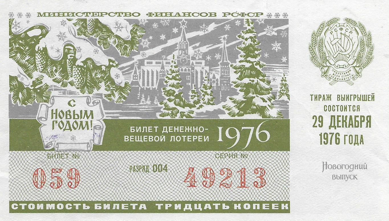 Билет денежно-вещевой лотереи 1976 г. Новогодний выпуск.